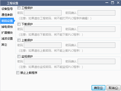 Upload protection: Set the upload password for the PLC program. When uploading the program, you will be prompted to enter the password. Forgetting the password will cause the program to fail to upload