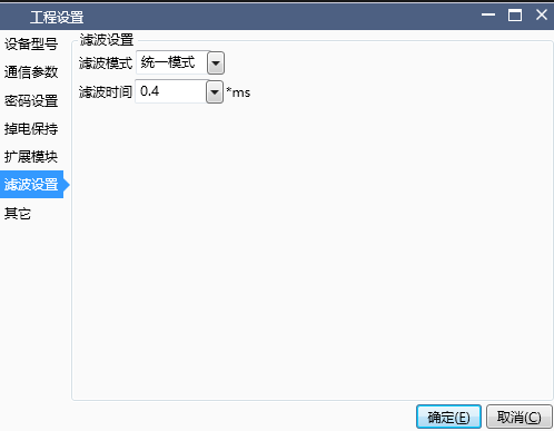 When the unified mode is selected, the filtering time can be configured, and the filtering parameters are applicable to all X input channels;