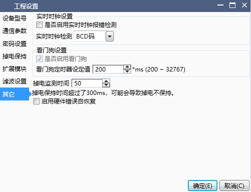 The watchdog timer value can be set, which is generally used to detect the problem of dead loops caused by users writing ladder diagrams or function blocks;