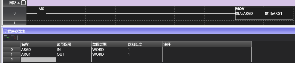 Taking the above figure as an example, the subroutine defines two parameters ARG0 and ARG1. As long as this subroutine is called, the software component login for the parameters must be completed in the editing window.
