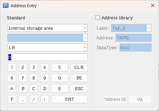 u Write Address: Click the Keyboard button icon after "Write Address" to enter the address. SKTOOL software will distribute corresponding address symbols according to different connected devices. For example, in FX-2N series of MITSUBISHI (Mitsubishi) PLC, X represents the address of input coil; Y represents that of the output coil; M that of the intermediate relay; C that of the counter (switch status display); T that of the timer (switch Status display); D that of the data register; C * that of the counter (count value); T * represents that of the timer (count value). Another example is the series of SIEMENS (Siemens) S7-200: I represents the input address; Q on behalf of the output address; M on behalf of the intermediate relay address; V on behalf of the data register address. As shown in Figure 4-71: