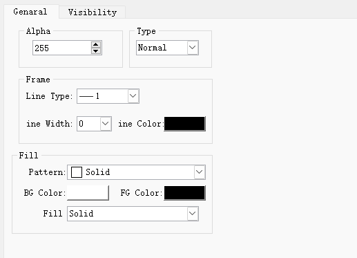You can adjust the properties of the rectangle through the pull-down and fine-tune buttons. SKTOOL configuration software provides up to 15 types of borderline, 10 kinds of borderline width and 21 kinds of fill patterns. As shown in Figure 4-30: