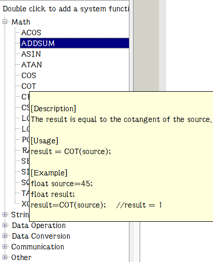 When you select a built-in function, you can hover your mouse over the function to see a description of the function and an example of how to use it.