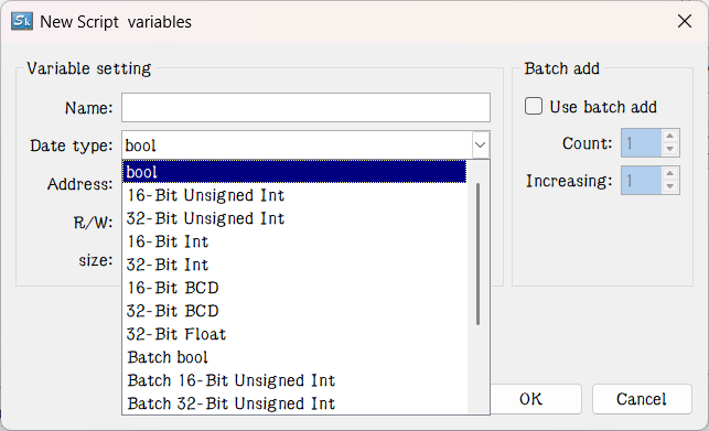Batch 32-bit float: A collection of 32-bit floating-point numbers. Suitable forprocess multiple value with decimals simultaneously.