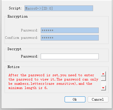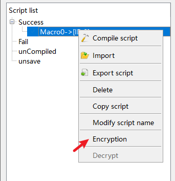 Select the macro to be encrypted, right-click to select the "Encrypt" function, and set the password according to the prompts