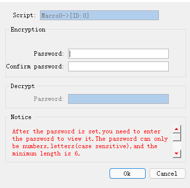 When the encrypted macro function is exported, the corresponding password will not be exported. When the macro is imported to other projects, it needs to be encrypted again.