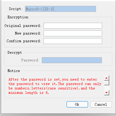 Keywords:macro instruction encryption steps,macro instruction function decryption steps, macro instruction function password modification steps,precautions