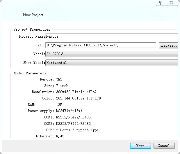withSK-070GWFor example,The new project is shown in the following figure: