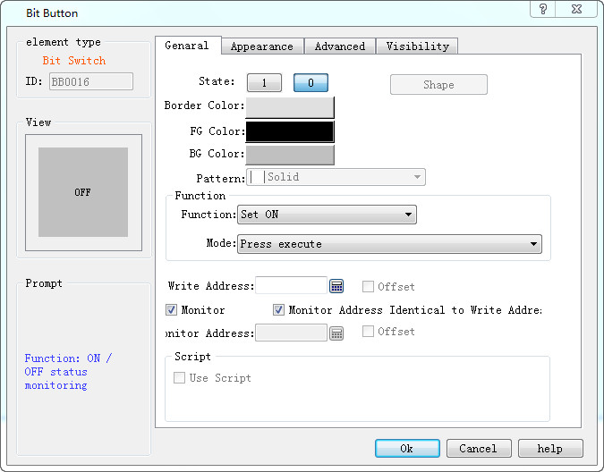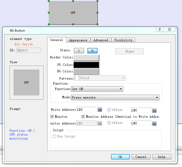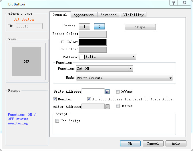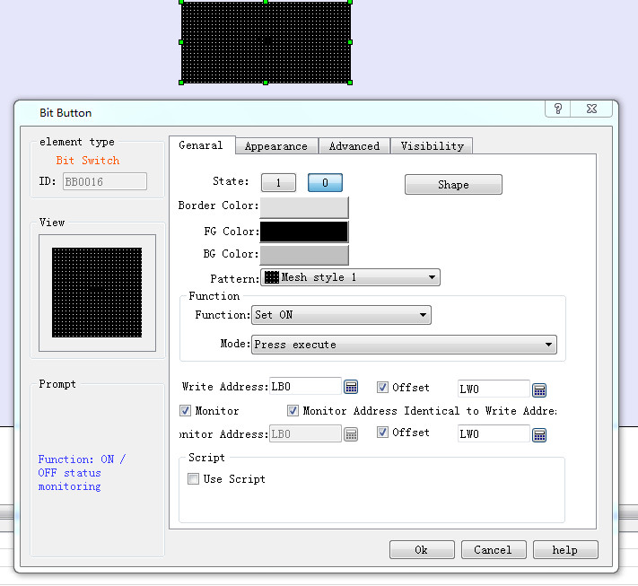 Control attribute:The remote configuration control attribute has a subtle difference to the touch screen group attribute, which can be seen in the shape, style, and address migration, and the macro instruction is the grey non-selected state. The relevant properties are not set in the remote configuration. The other controls are the same. The grey state properties are not set