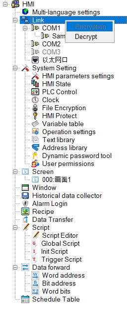 Ø Encryption/decryption. Right-click the connection and select Encryption. After encryption, the protocol node cannot be modified and needs to be decrypted before modification.
