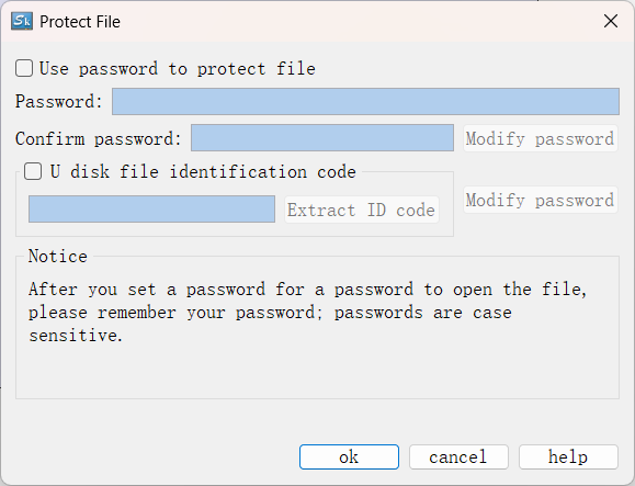 Select the "Use password to protect file" in the above dialog box; enter in the Password and Confirm Password; click "OK" to complete.