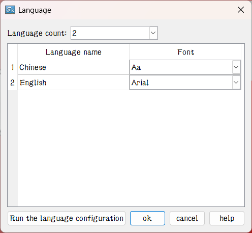After clicking the "Run Language Configuration" button, the following interface will be displayed: