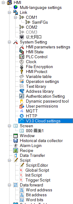 Double-click the V3.0 cloud settings in the project manager, and the settings page will pop up as follows: